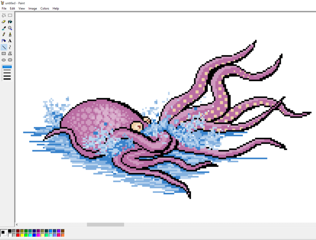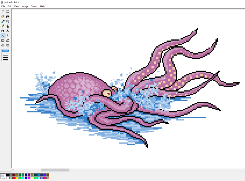 In today’s world of advanced graphic design software and powerful editing tools, it’s easy to overlook the humble MS Paint application that used to come standard with every Windows computer. However, for those of us who grew up with it, this basic tool holds a special place in our hearts. And for me, it’s still a go-to tool for creating pixel art, especially for retro-style video games. In this blog post, I’ll take you through my process of using MS Paint to create a pixel art Kraken for a retro-style JRPG that my nephew and his friends are creating. This isn’t just a one-time project, either – I’ve been using this technique since my college days at LSU, when my older brother and I were working on a video game project that never quite made it to completion. However, the skills I picked up along the way have stayed with me, and I’m excited to share them with you.