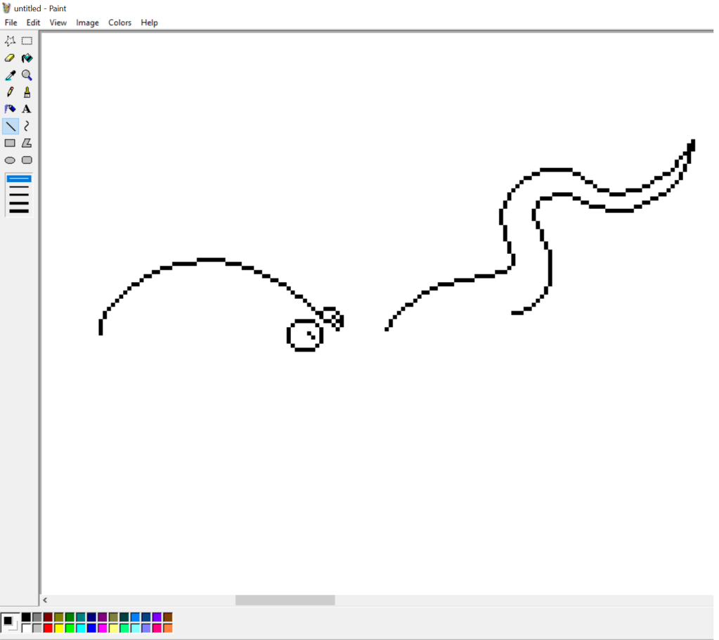 To start, I generally begin with a dark outline using the line drawing tool. I use it to create curves–I never bother with the curved line tool.